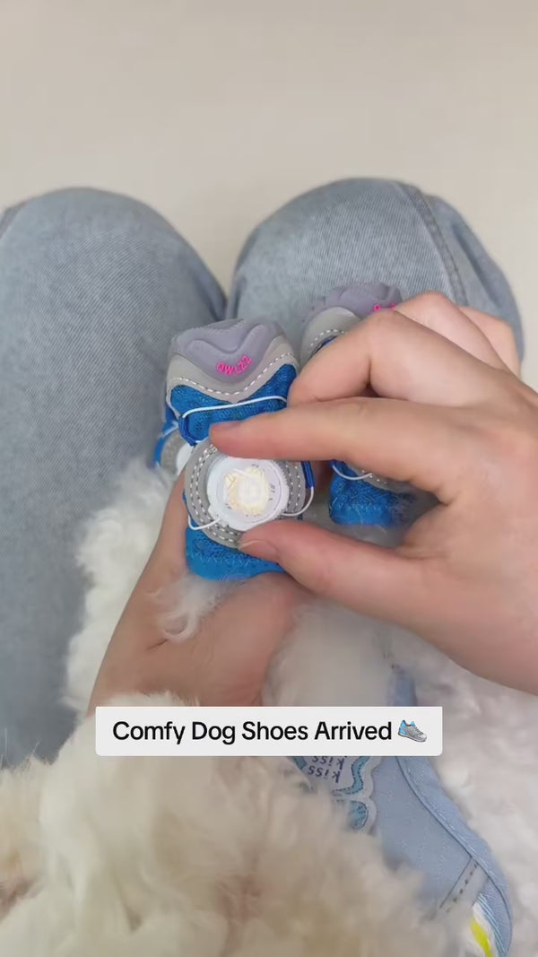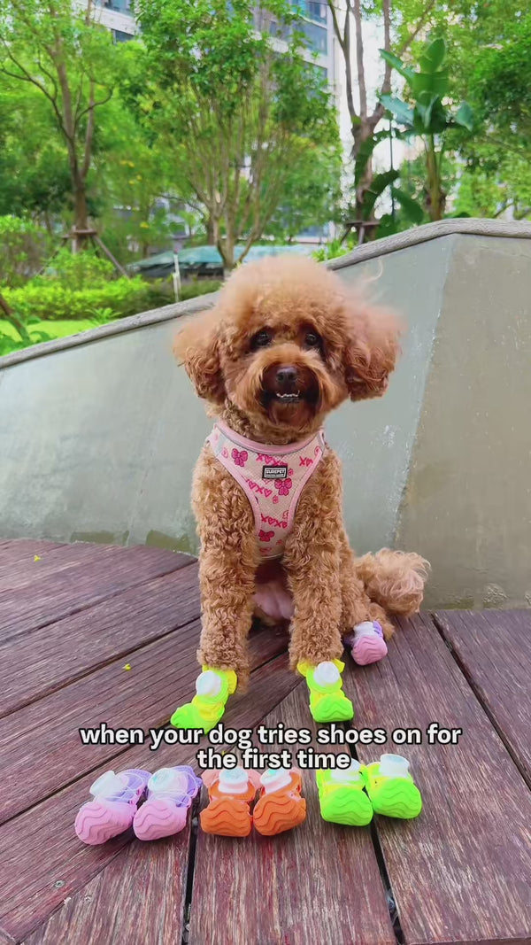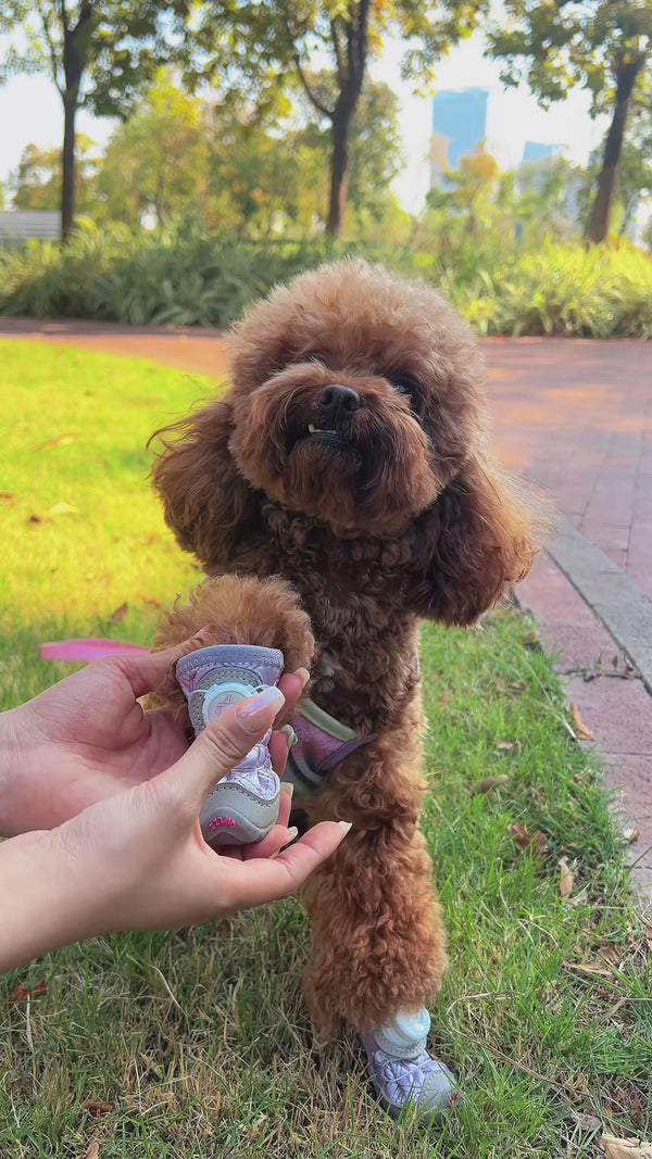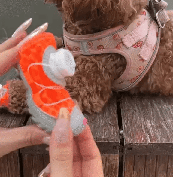 These dog shoes feature a push-button smart elastic design, making them incredibly easy and quick to put on and take off. I love this design; it ensures the shoes stay securely on your dog's paws while allowing for easy on and off at any time.