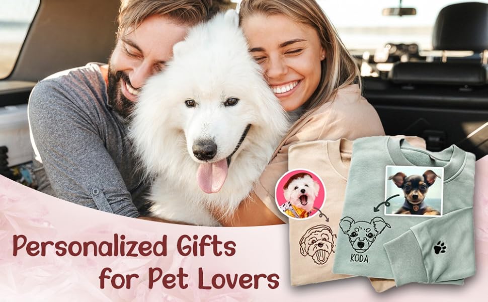 🐾 Custom Pet Portrait Embroidered T-Shirt, Sweatshirt & Hoodie 🎨💖